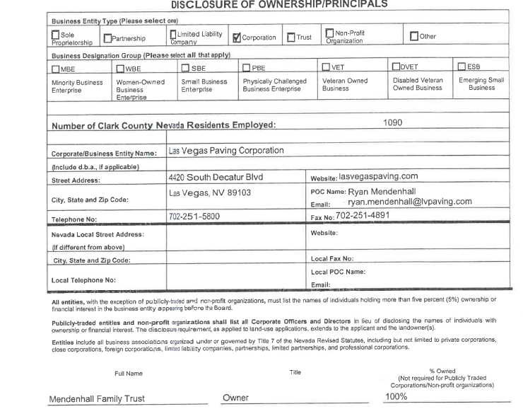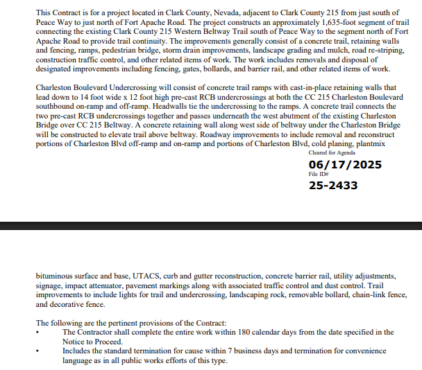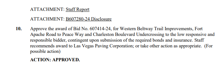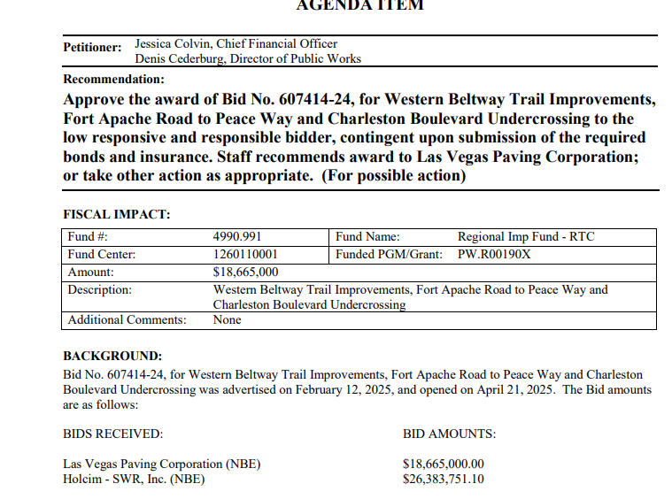 Here’s the Clark County commissioners’ action info, showing the funding approval, the two bidders, the project description and contact info for Las Vegas Paving.
