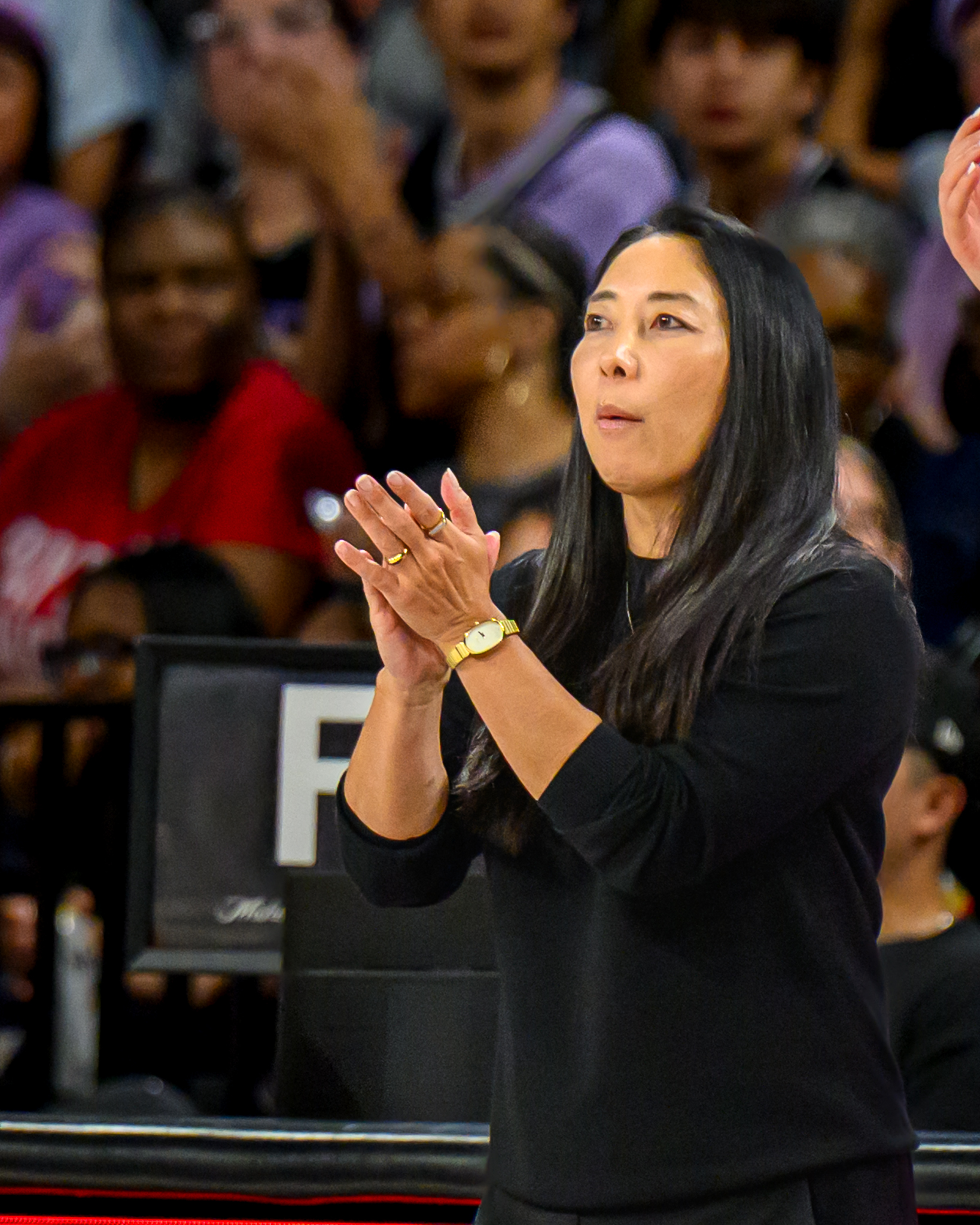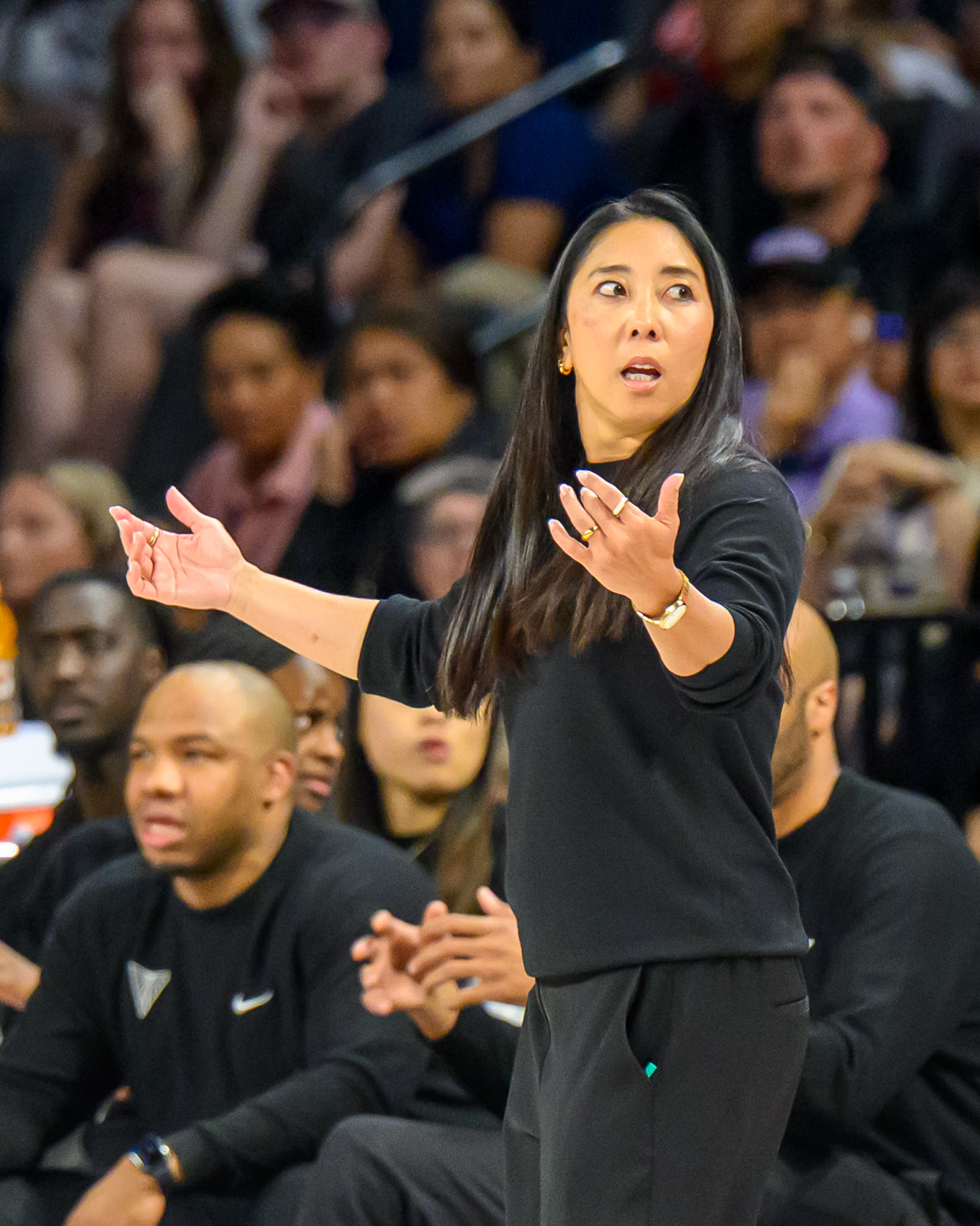 Nakase outlined her coaching identity in response to an LVSportsBiz.com question before her team took on the Las Vegas Aces, the team she served as an assistant coach under Becky Hammon. (Nakase commented that Hammon is the “highest IQ coach” in the business.)