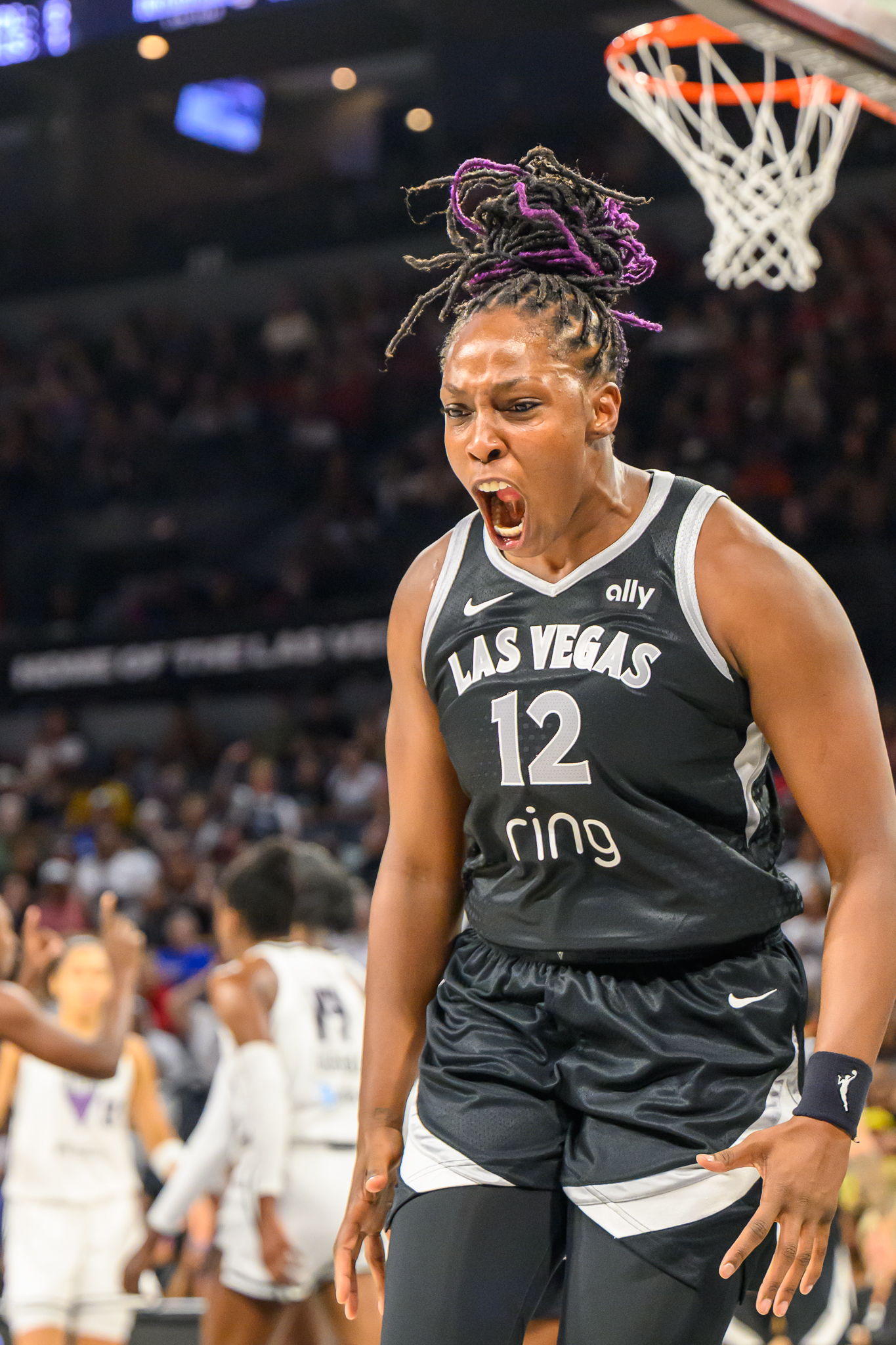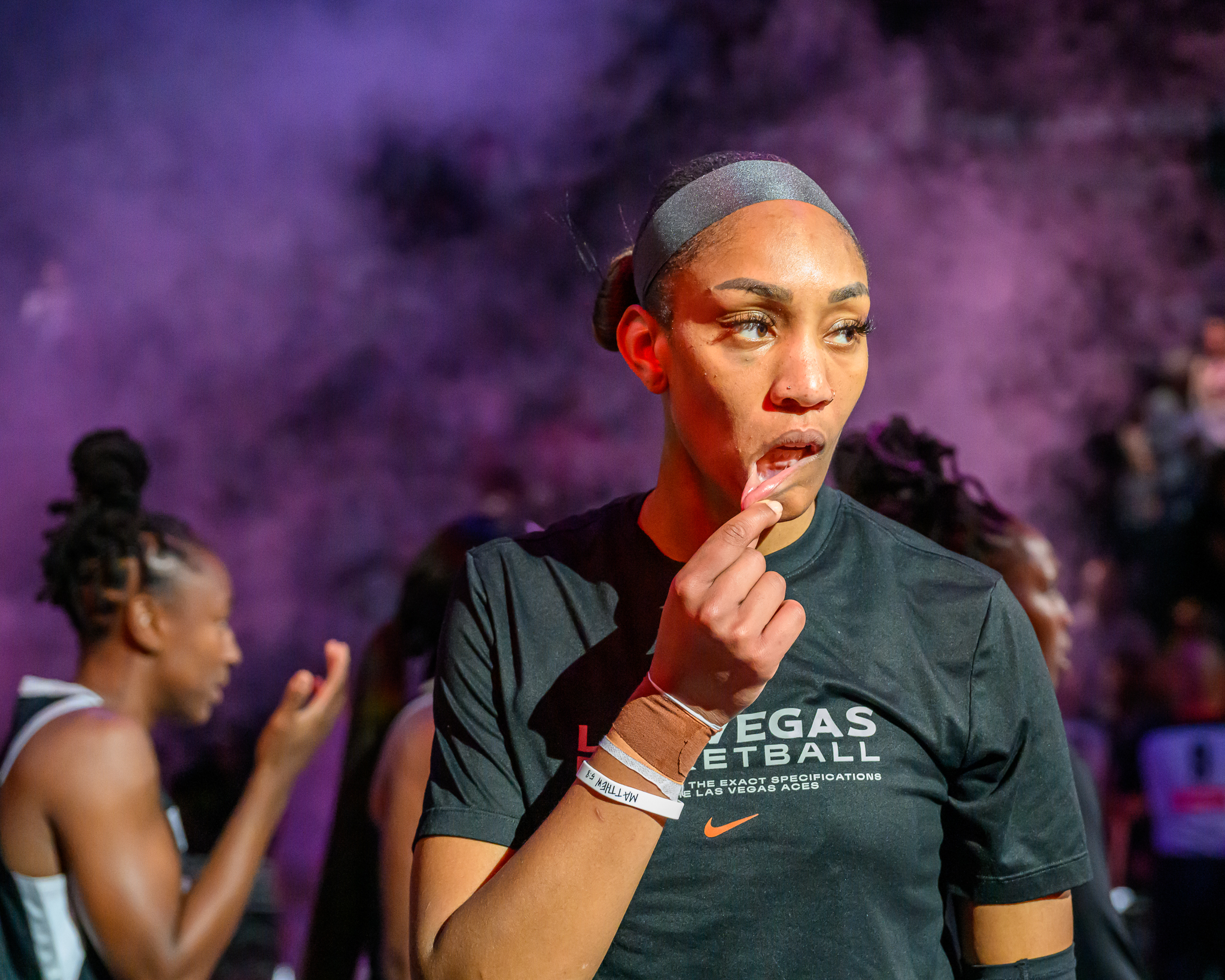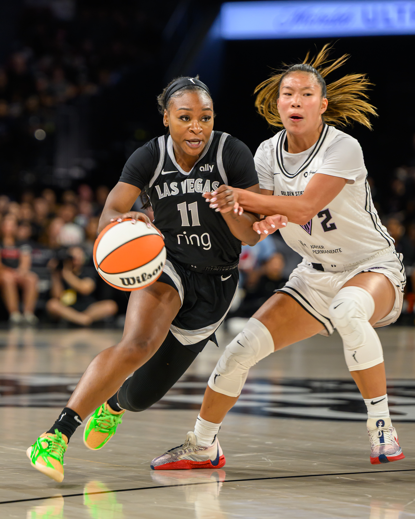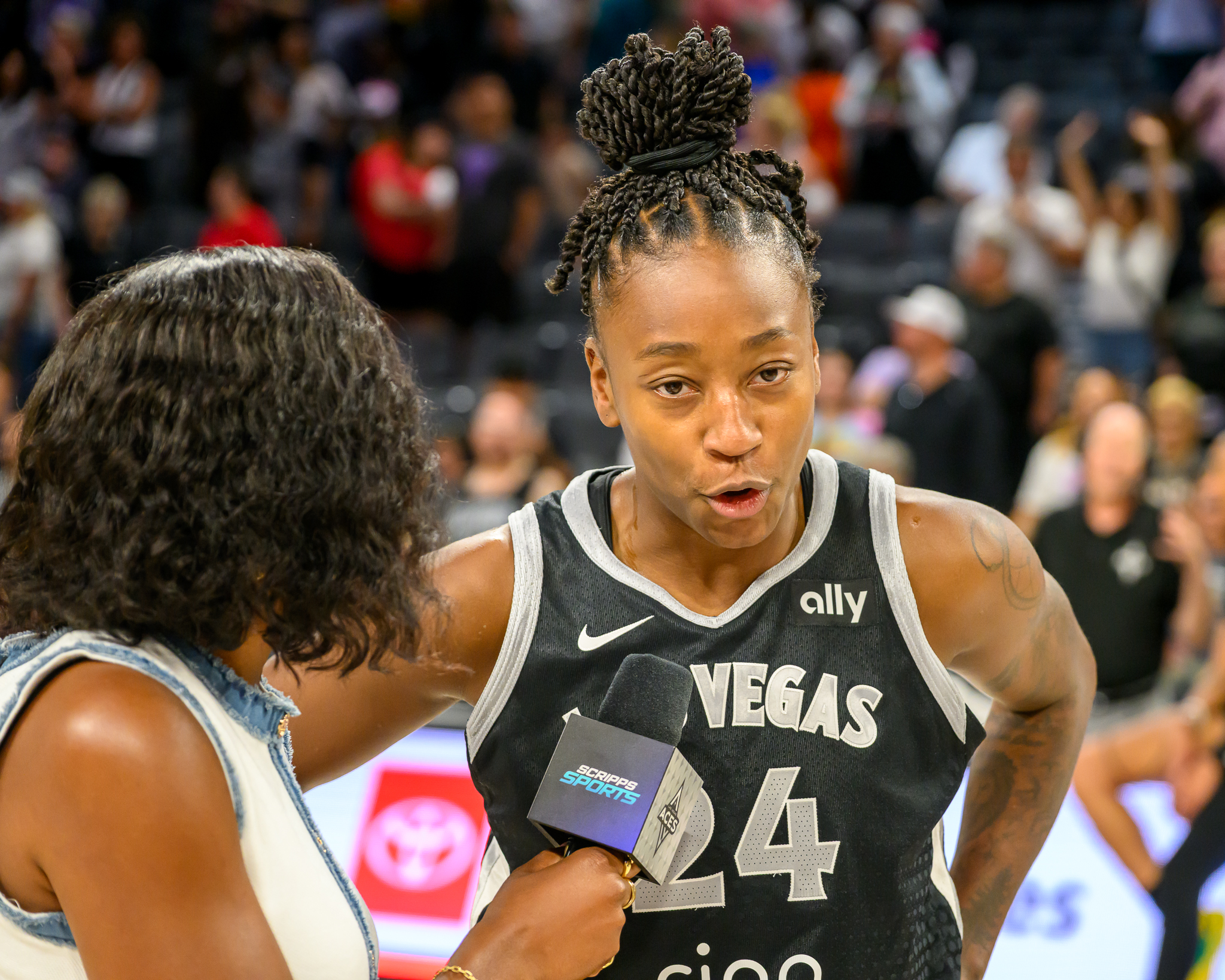 Late in the first half, the Aces led, 43-22, after an A’ja Wilson three-point play as Aces stepped up their defensive play. They held Golden State to a mere 25 points in the first half and enjoyed a 25-point lead after the first 20 minutes. Halftime: Aces 50 Valkyries 25.