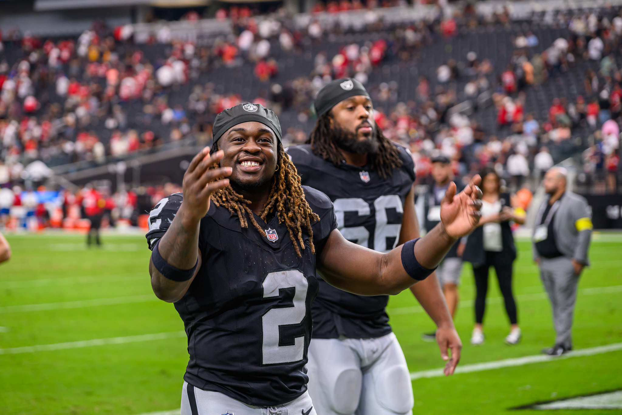 Maxx Crosby welcomed seeing rookie Ashton Jeanty’s power run for 13 yards in the first half.