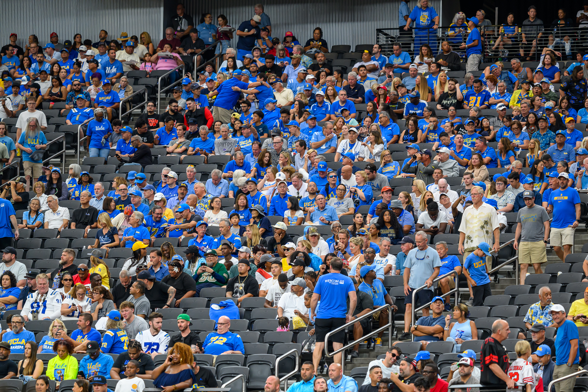 The stadium’s lower bowl was full, with some fans filling seats in the upper bowl at midfield. It looked like a decent crowd in the 30,000s, and we will get the announced attendance later today. There were some UCLA fans in the NFL stadium run by the Raiders.