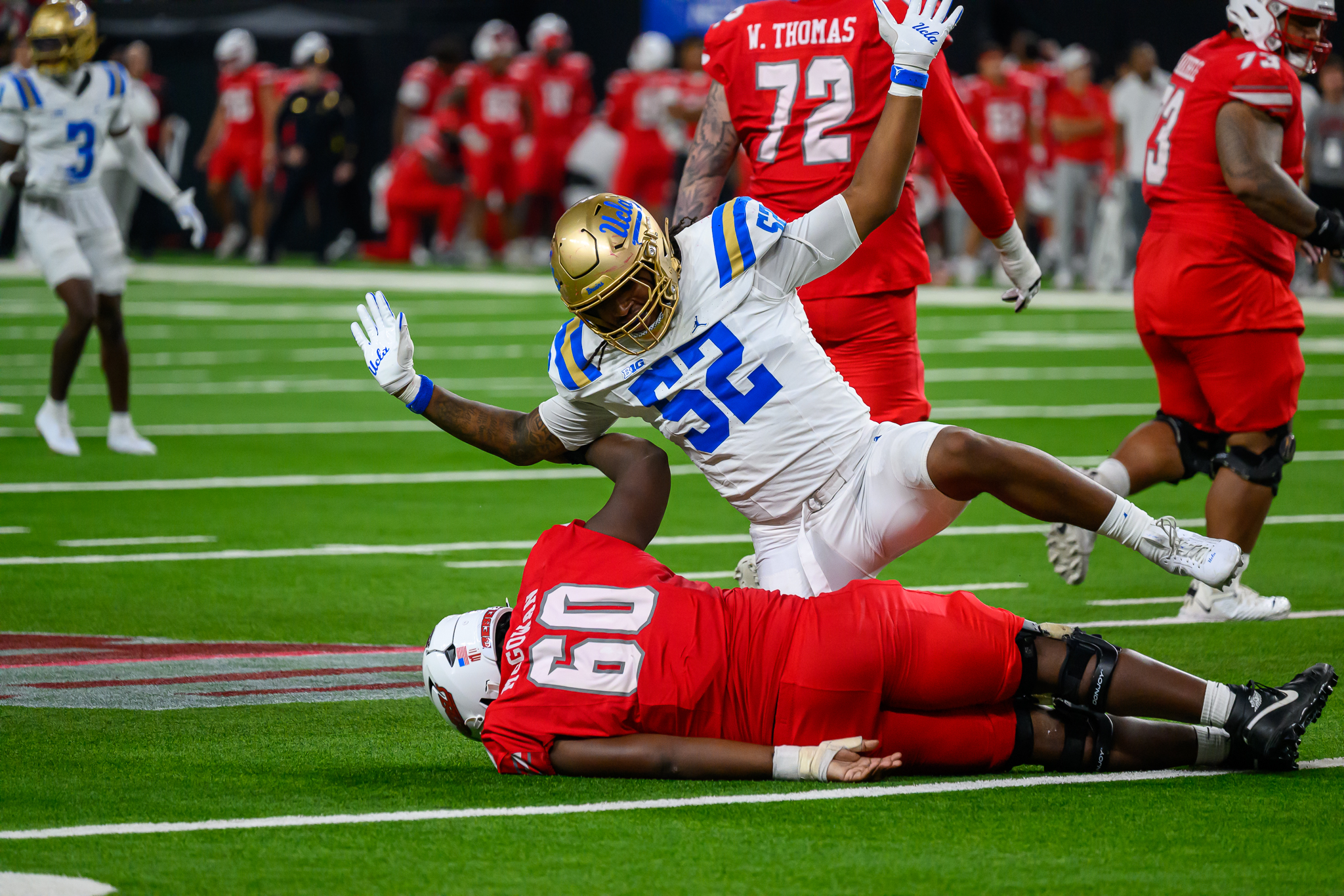 UNLV held UCLA and its much heralded quarterback Nico Iamaleave to 110 total yards in the first half before UCLA rebounded with more than 300 yards in the second half.