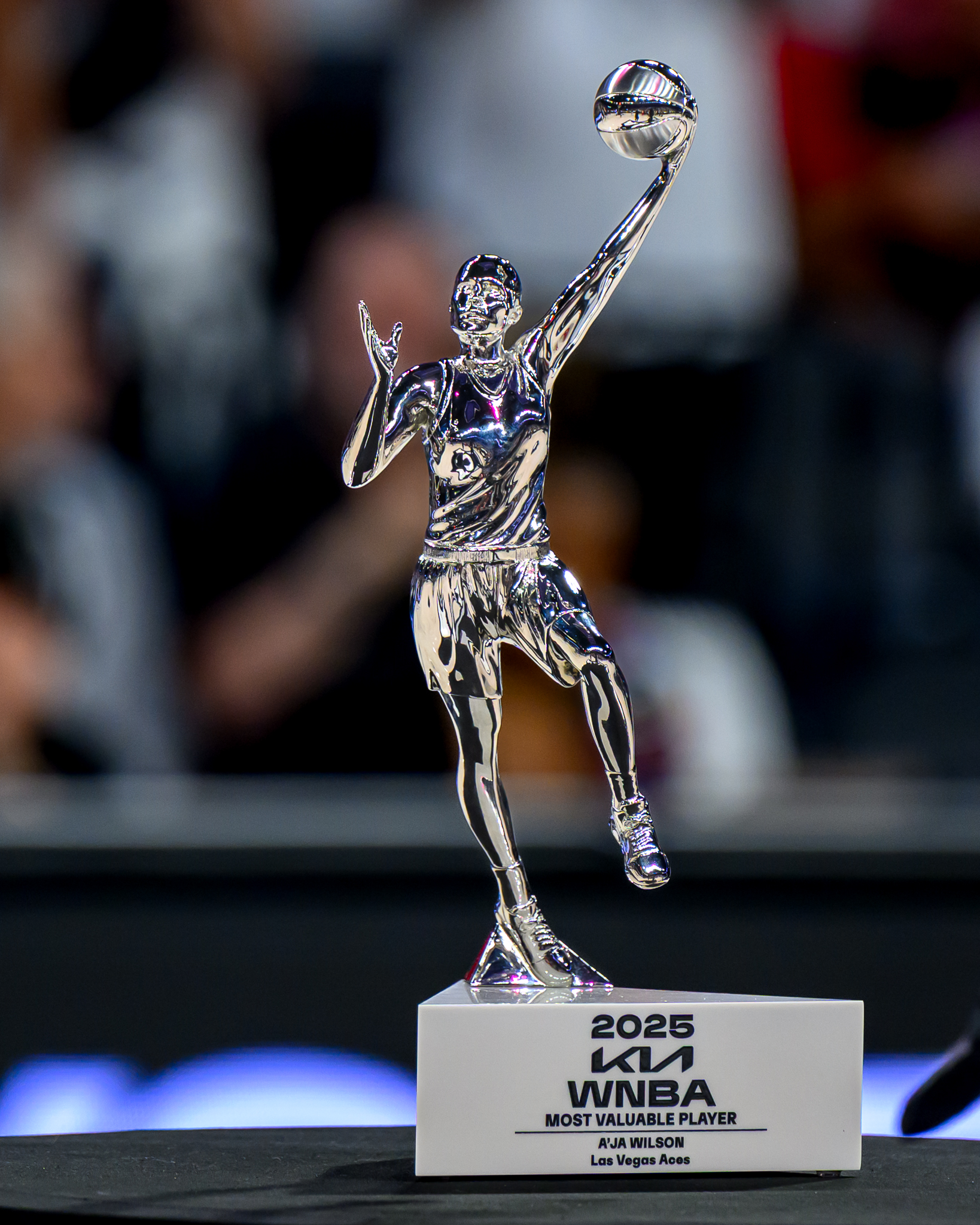 Wilson averaged more than 23 points and 10 rebounds during the 2025 season and also won Co-Defensive Player of the Year with Minnesota Lynx forward Alanna Smith. It was the third time in four years that Wilson has received that defensive award.
