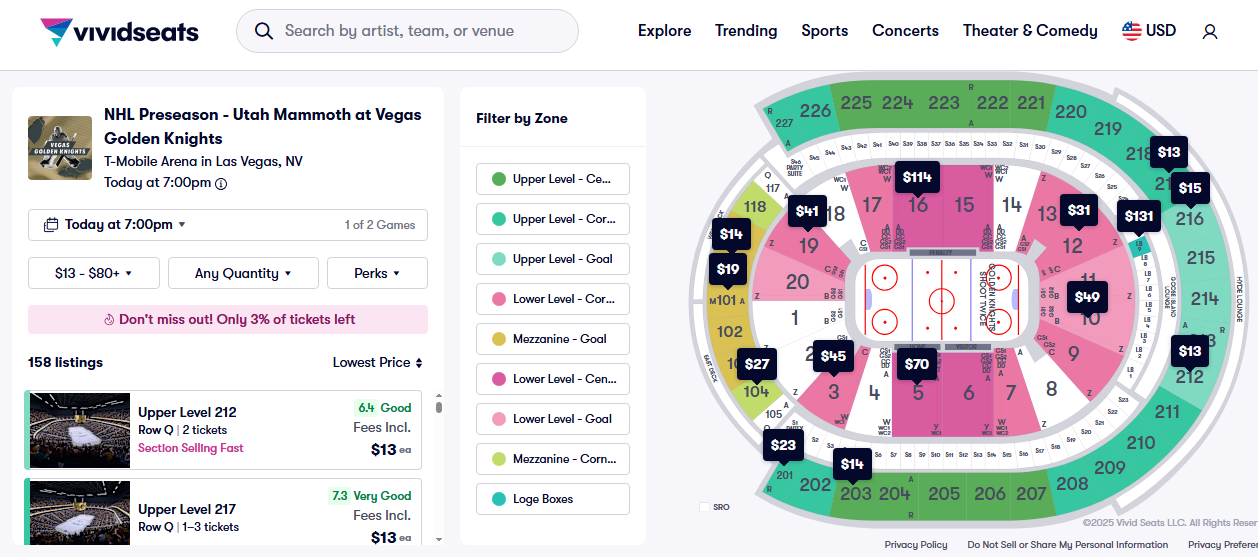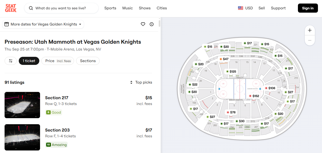 Yes. VividSeats had a $13 ticket for Thursday’s Utah Mammoth at VGK game.