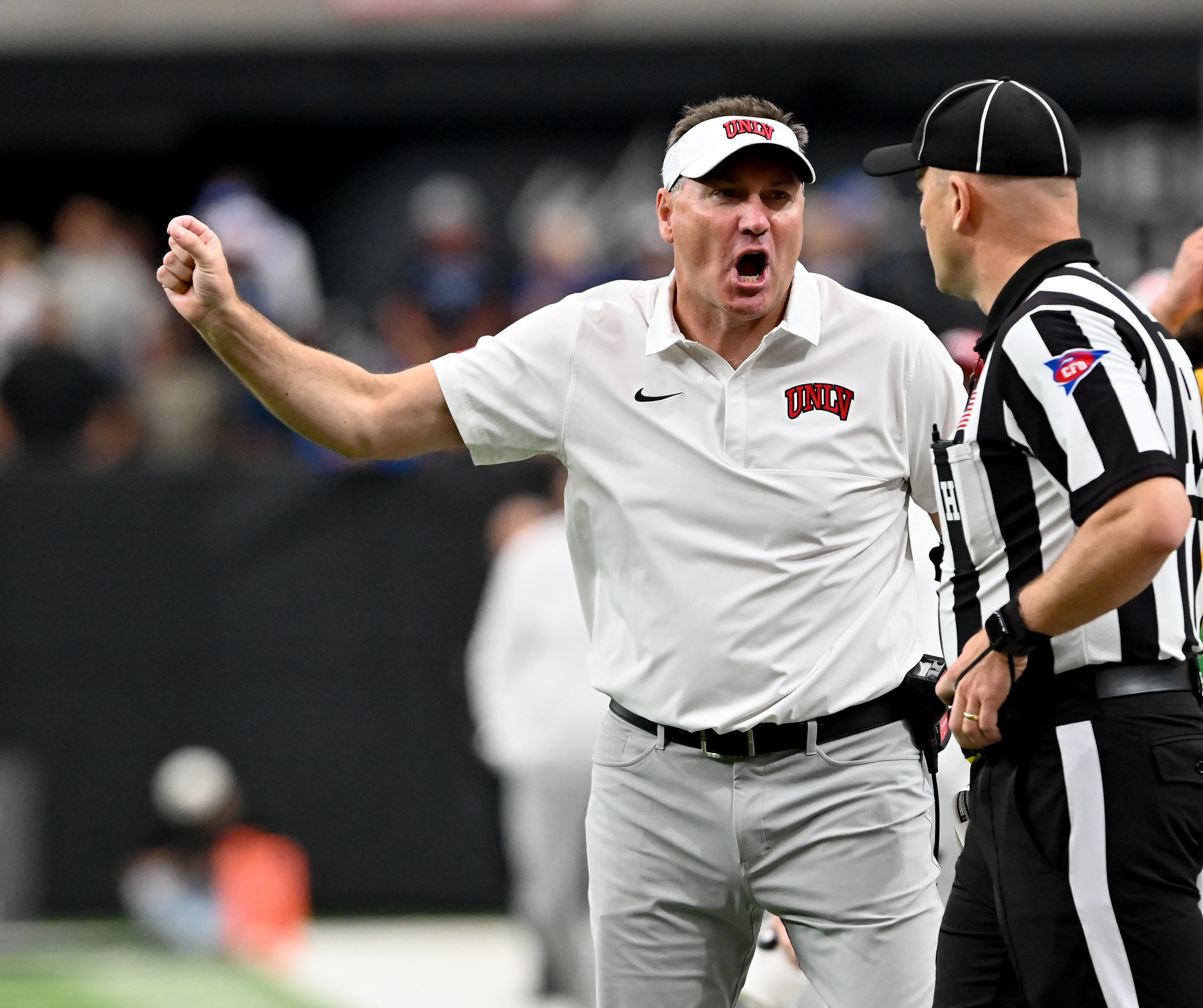 LAS VEGAS, Nevada — UNLV’s football team had just won a crazy 51-48 game over the Air Force military academy and the Rebels’ giddy coach, Dan Mullin, took a seat behind a post-game mic in the Allegiant Stadium interview room late Saturday afternoon.