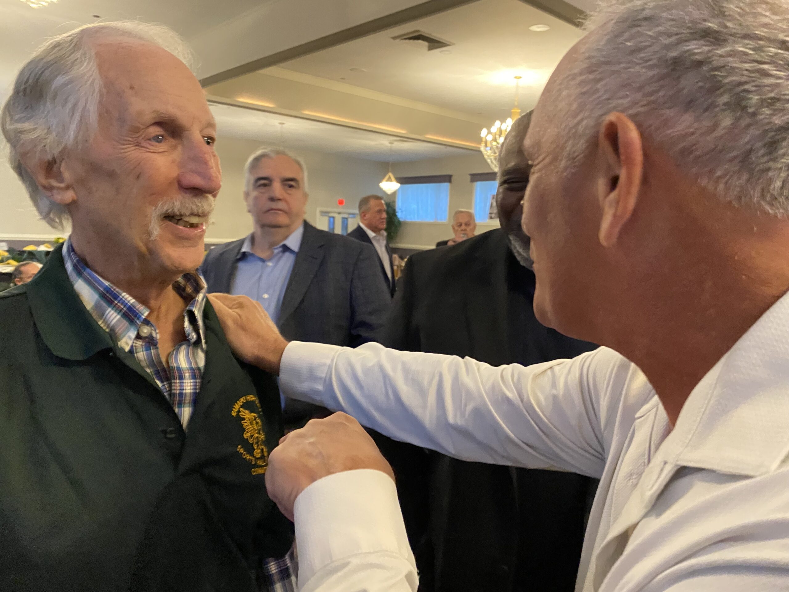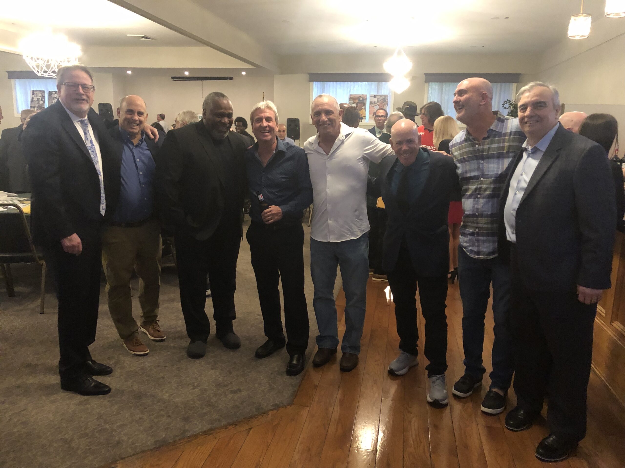 There was Howie Suckle at first base and DH, our friendship born in elementary school. Bobby Conklin, the versatile and talented number 20, played anywhere and was a big contributor. Fucci, our reliable outfielder, traveled from Boca Raton, Florida, while Les Saland, who played 2B, came from Tampa for our reunion. It was great to see outfielder Gene Badolato, as humble a dude as you will find, and, of course, Andre, the shortstop. We manned the left side of the infield. We missed infielder Vinnie Favia. Of the 16 of us on that roster, 11 attended the induction dinner.