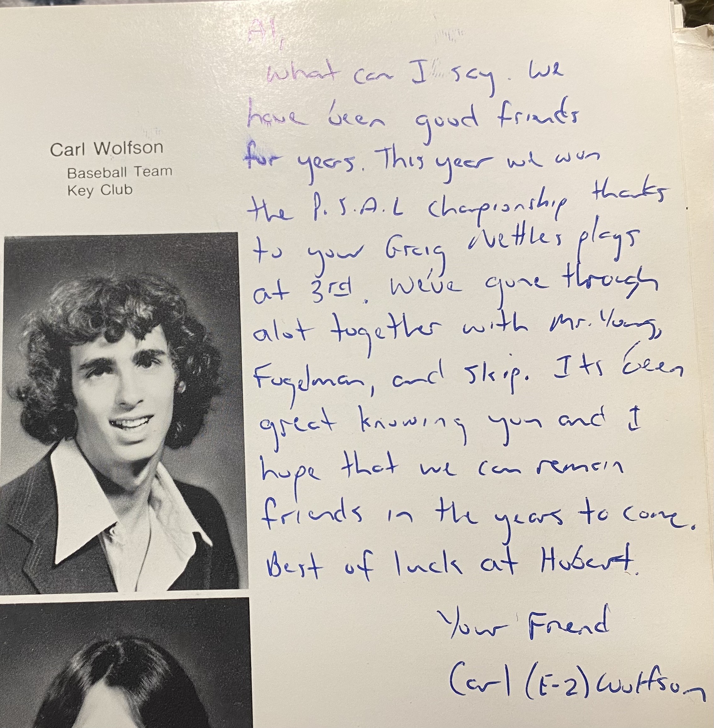 We were good friends from high school and we played on the Ramapo baseball team that surprised Rockland County north of New York to win the county championship in 1979. Carl was the starting catcher while I manned third base. Our friendship dated back to junior high.