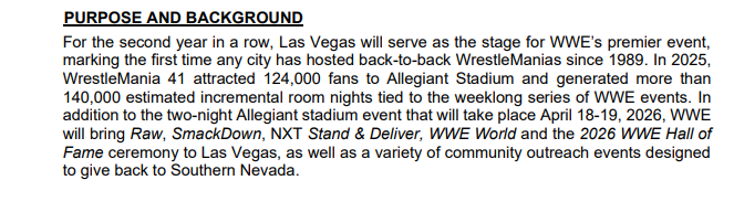 LVCVA Poised To Give $6 Million To WWE For 2026 WrestleMania in Las Vegas And Spend $1.25 Million On F1 Las Vegas Race Tickets For Customers
