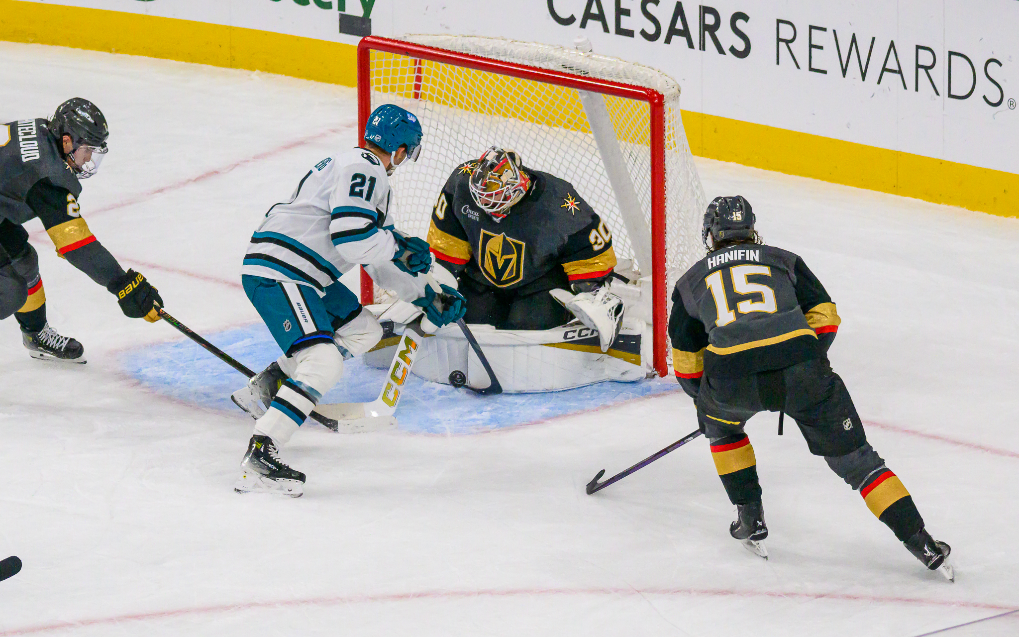 The Golden Knights, winners of only ten of 24 games entering tonight’s home game, showed how difficult it is to secure a win in the NHL these days by jumping out to a 4-1 lead over the improved San Jose Sharks in the second period Saturday night only to see the Sharks jump back into the game with two goals before the middle stanza ended.