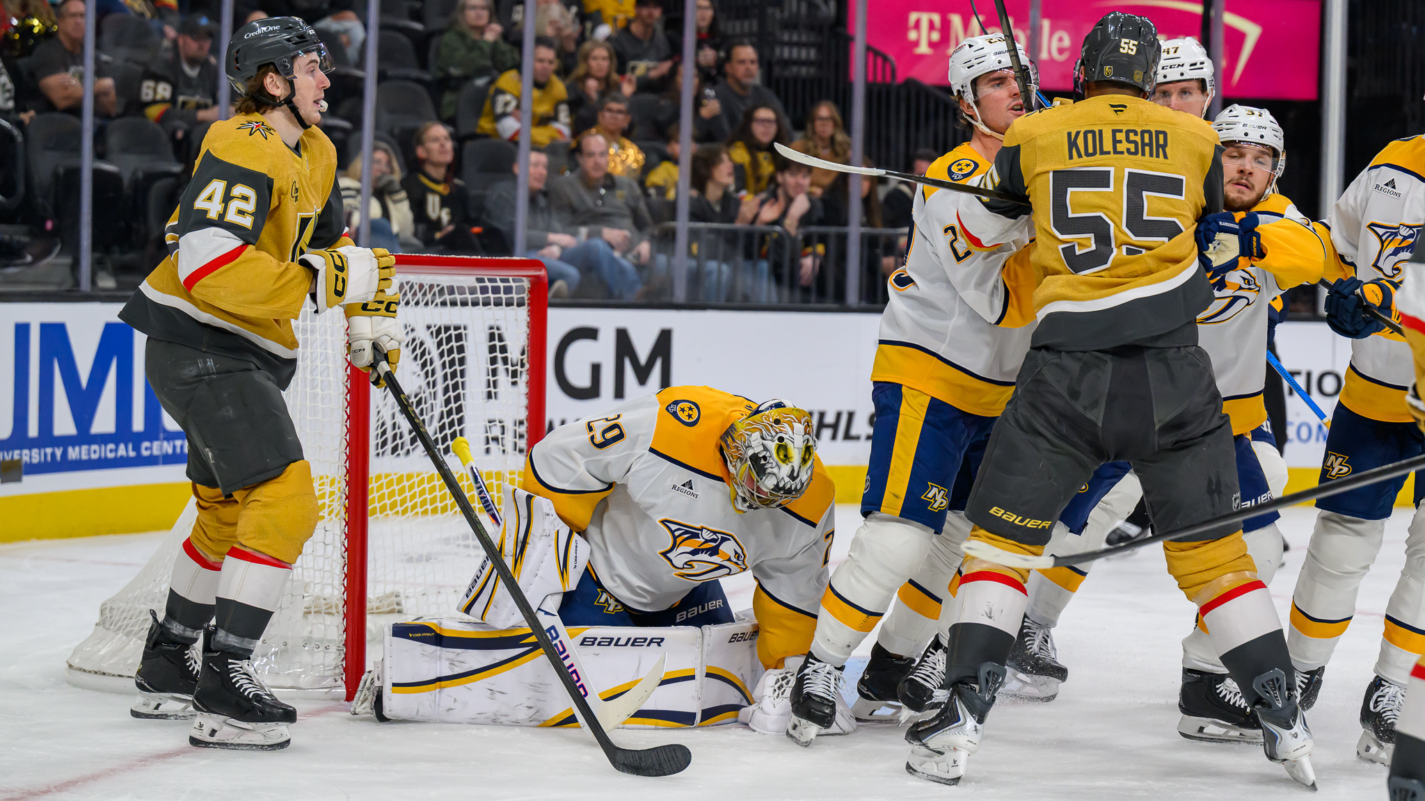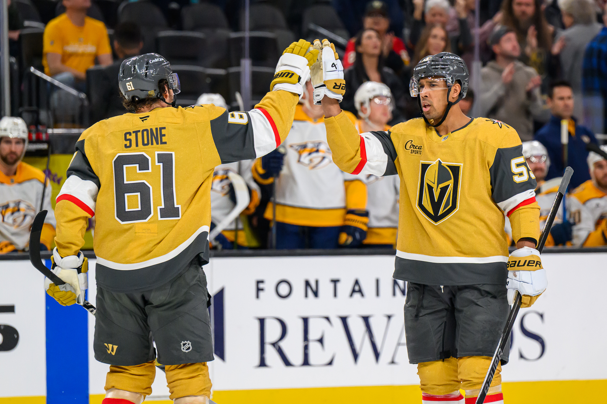 A game against Nashville means seeing two old VGK players from Vegas’ 2023 championship team — forward Jonathan Marchesssault and defenseman Nic Hague.