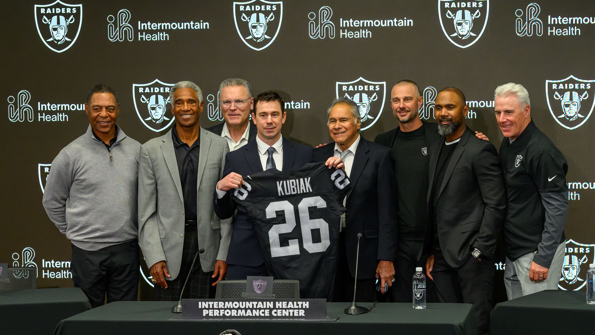 Only two days removed from coaching the Seattle Seahawks offense to a Super Bowl 60 championship, Kubiak was flanked on stage by the greatest living Raiders players like Howie Long, Charles Woodsen, Nike Haynes and Marcus Allen at his introduction.