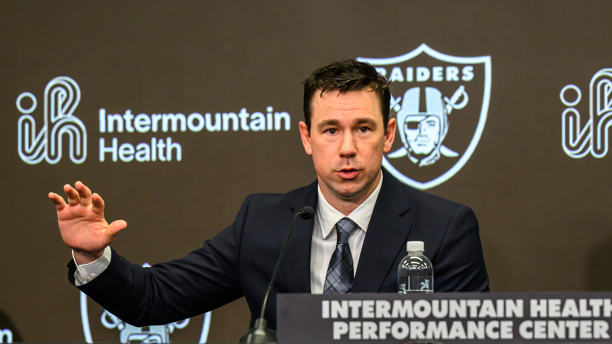 LAS VEGAS, Nevada — The new 38-year-old head coach of the Las Vegas Raiders was dressed in dark suit, white shirt and tie this morning and when Klint Kubiak talked about God at his presser today it was easy to imagine the straight-shooting football coach sitting on a church pew bench.
