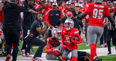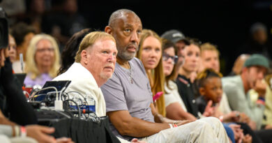 The contrast was clear — New Las Vegas and the Raiders and their all-time living players like Howie Long and Marcus Allen flanking new head coach Klint Kubiak and Old Las Vegas and the UNLV men’s basketball team in front of Vegas’ white-haired UNLV fans who found their red ballcaps and red UNLV jackets for tonight’s game.