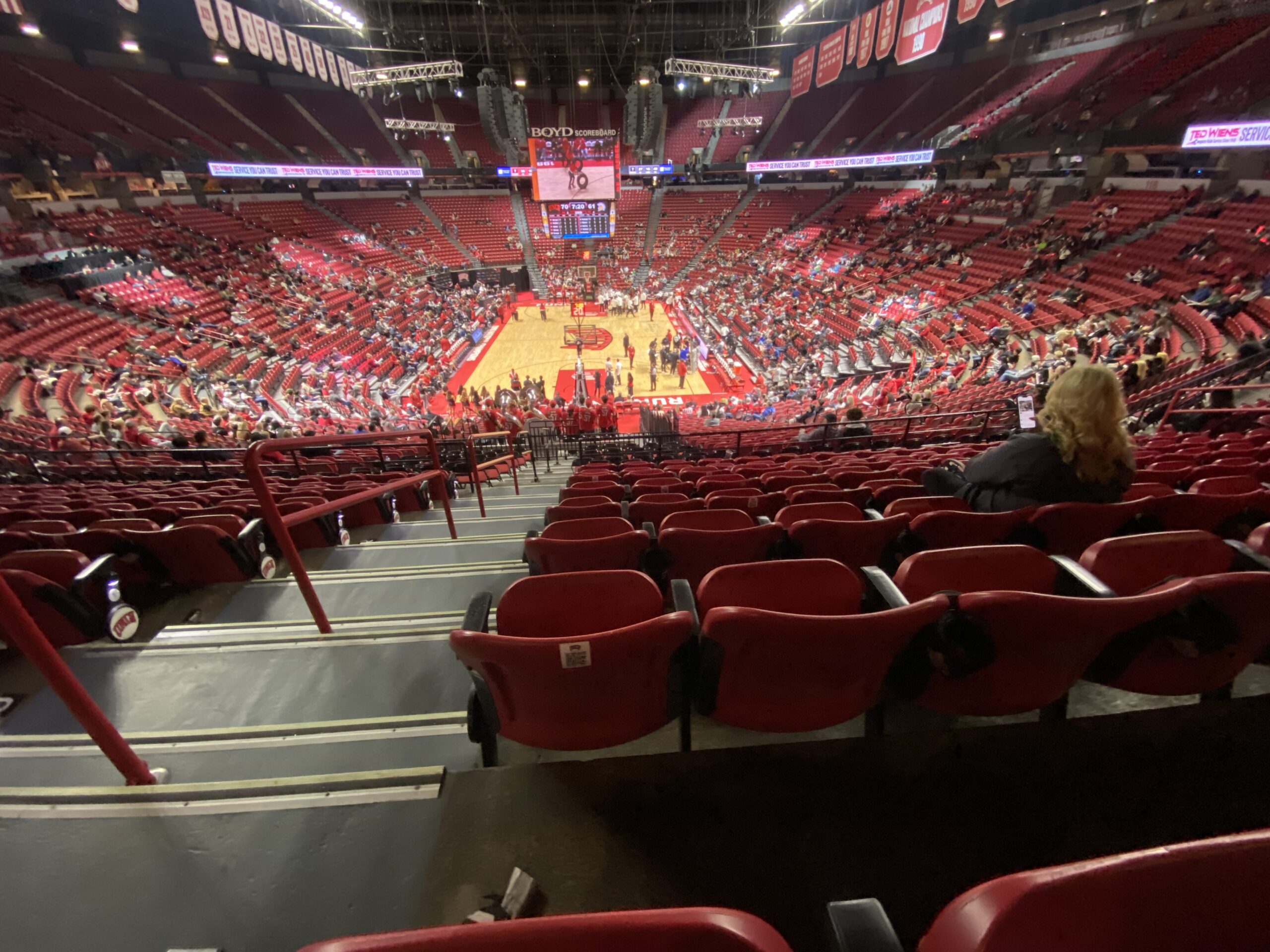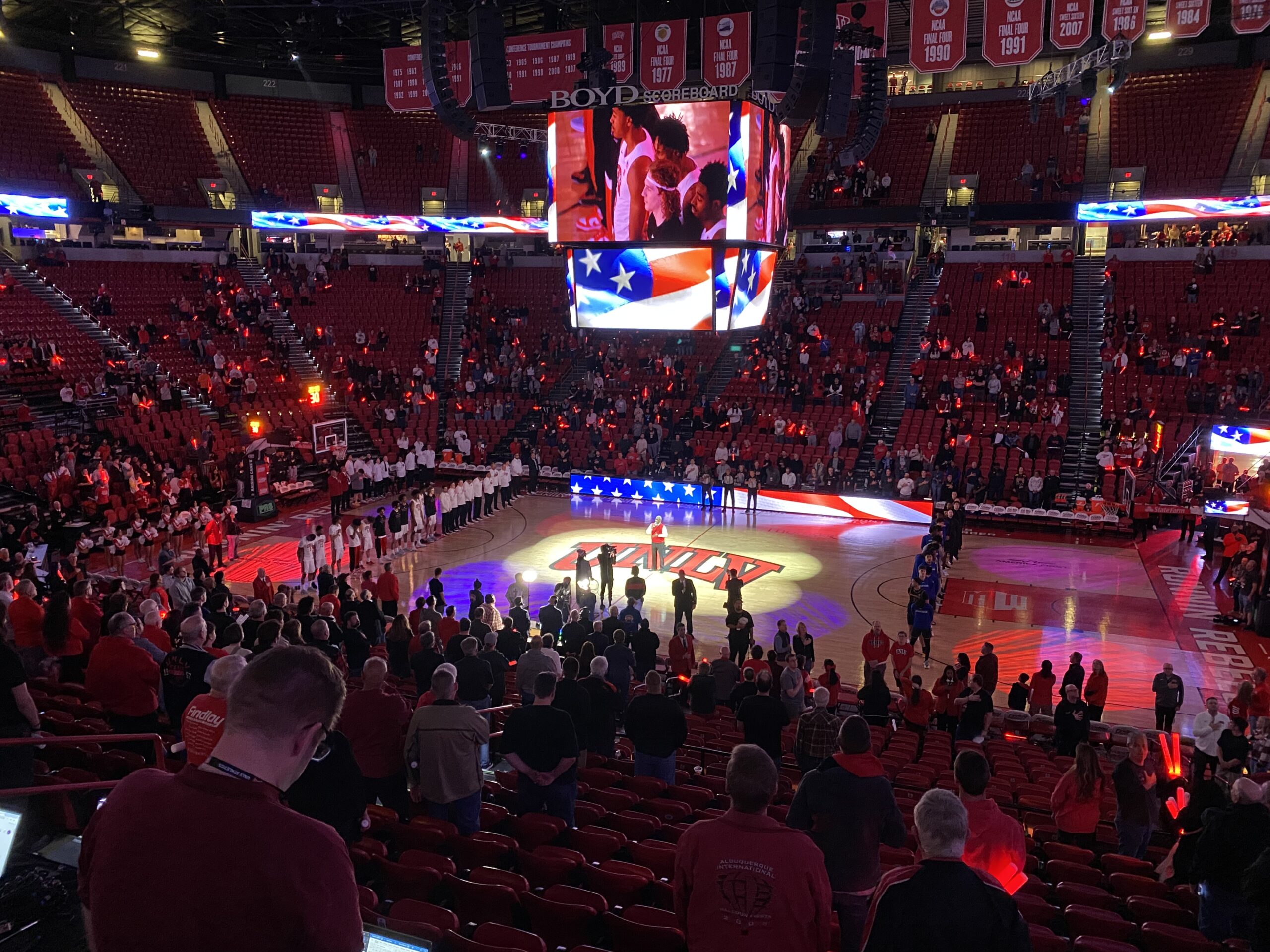 It wasn’t a big crowd at Thomas & Mack Center. But the UNLV faithful watched an entertaining first half that ended with UNLV holding a 45-41 lead.