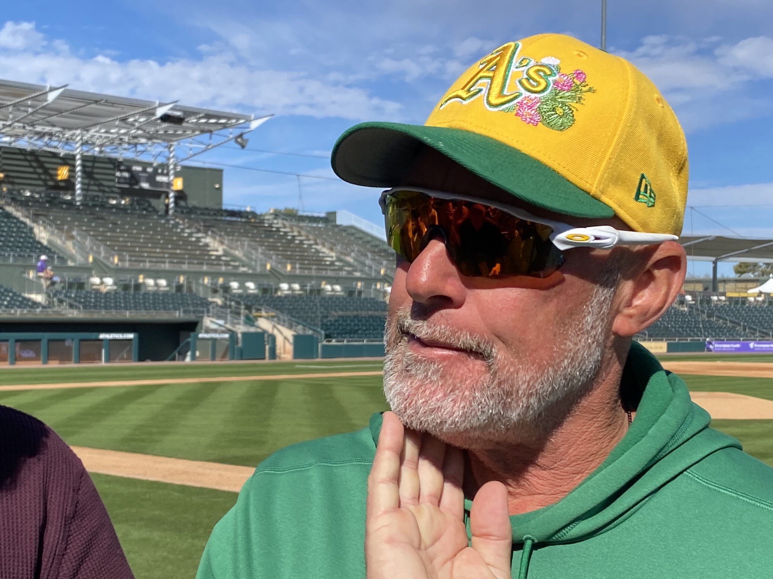 Last season Las Vegas in 2028 seemed rather far away but now before his team’s home-opener at Hohokam Stadium Sunday Kotsay talks about Las Vegas in 2028 and it seems so much closer. Maybe it’s because there’s visible progress in the stadium construction on the Strip and the A’s have already staged two player contract extension pressers at their welcome center in Las Vegas for blossoming stars Tyler Soderstrom and Jacob Wilson. Kotsay attended the Soderstrom signing presser.