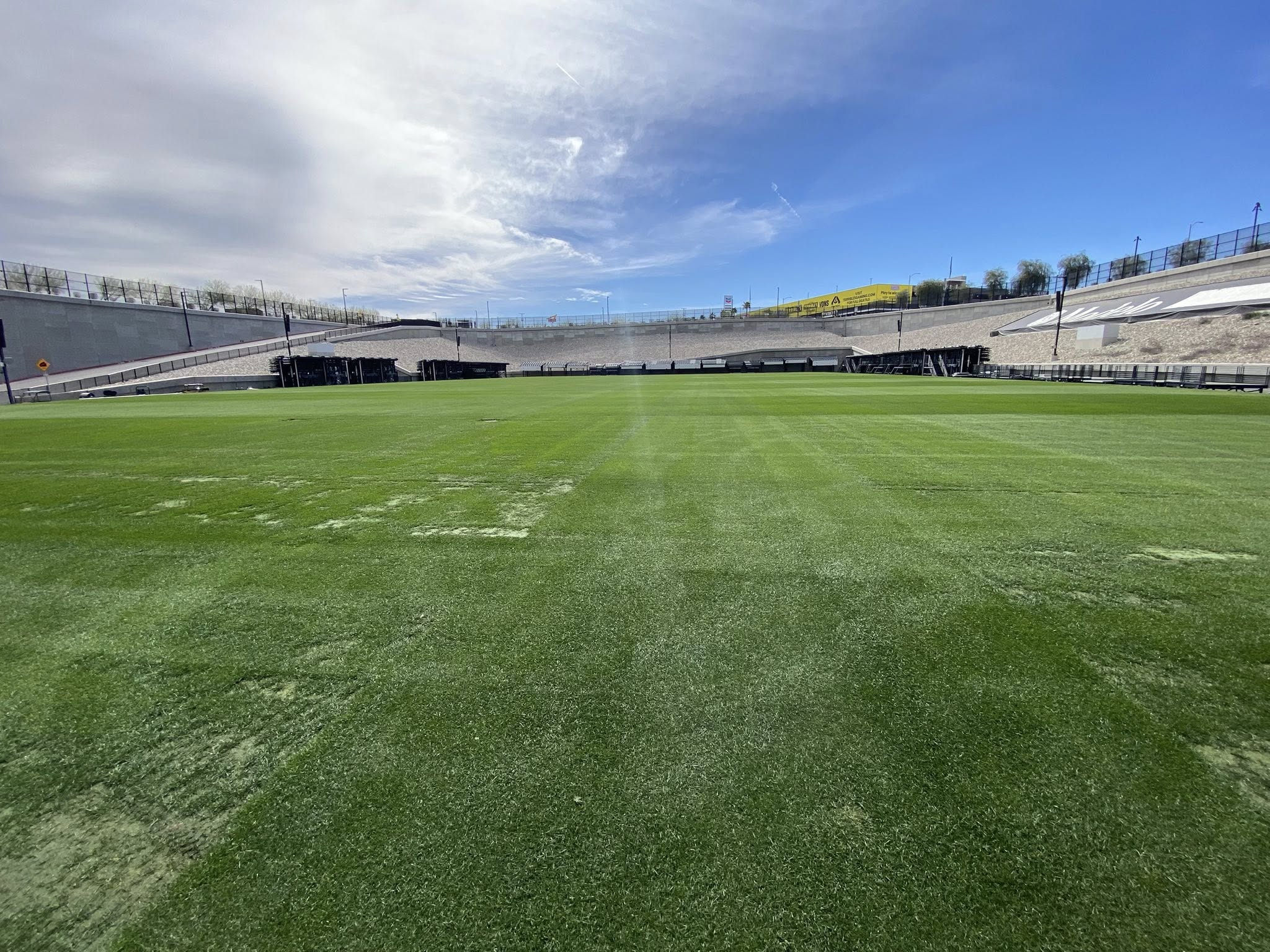 The league even showed reporters a rare up close look at the playing field, which sits in a tray outside the football stadium and gets rolled in.