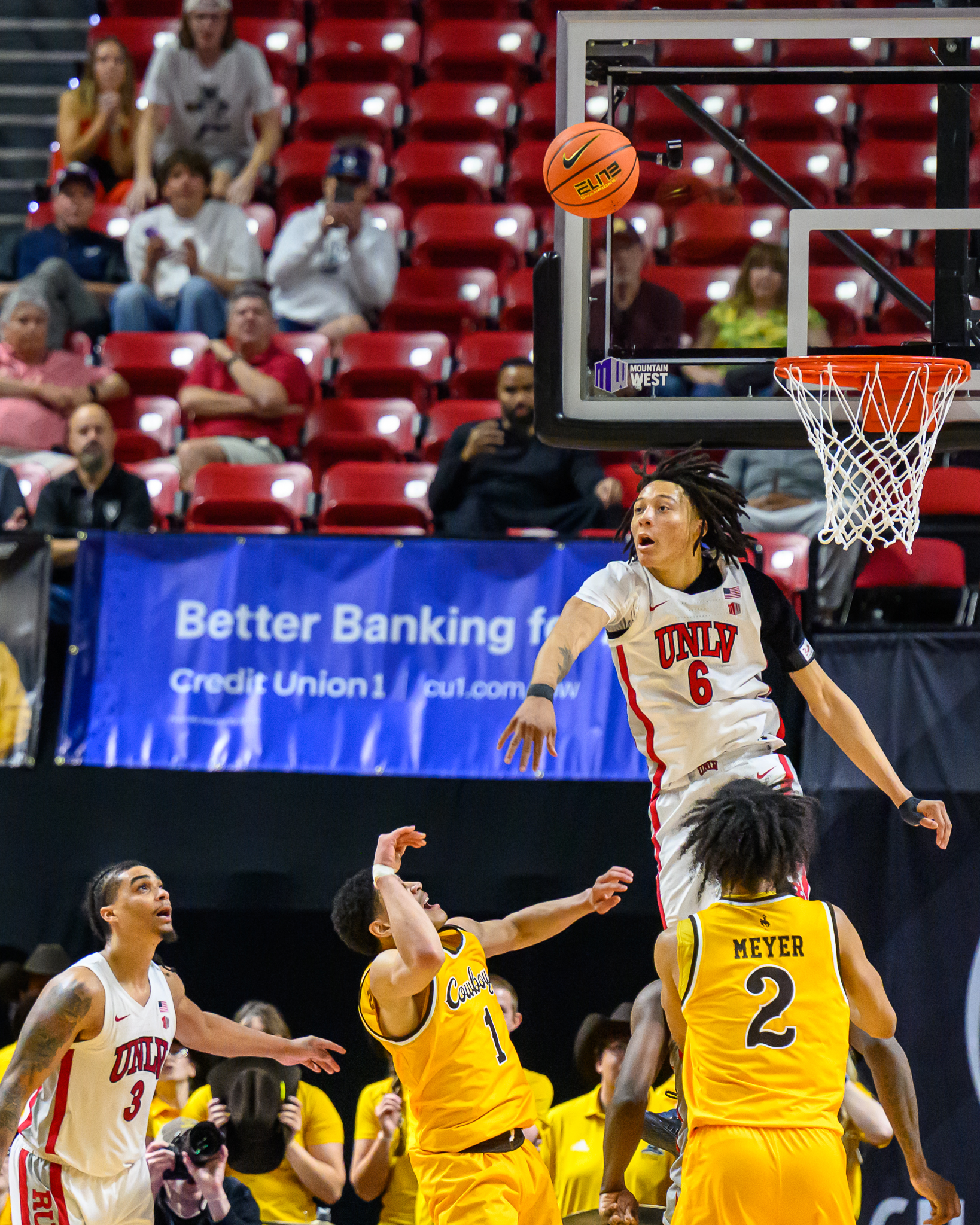 UNLV played a superb first half, leading Wyoming, 44-31, after the Cowboys nailed a three-ball at the first half buzzer. Wyoming made its move in the second half thanks to a nice run and trailed, 52-48, with 11:44 left in the game. UNLV had a a 16-point lead right before halftime.