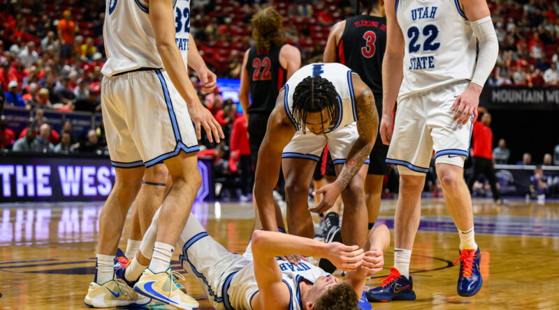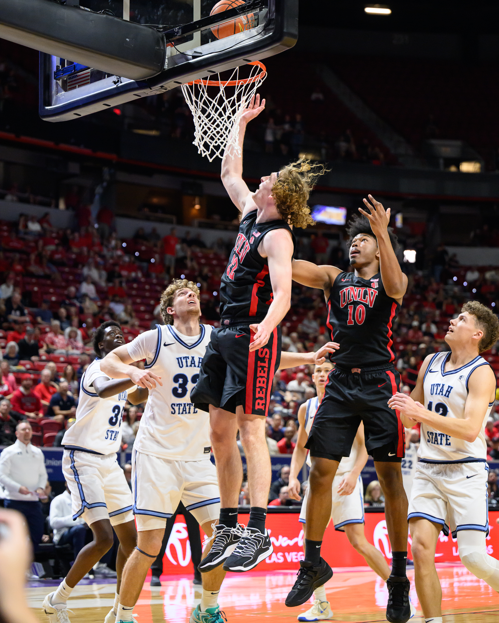 Up-and-Down Season Ending With A Thud: Frustrated UNLV Losing To Utah State, 69-50, Late In Game Thursday