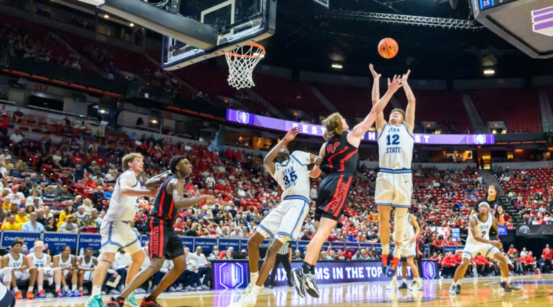 UNLV led Utah State, 16-13, in the first half but a Utah State 17-5 run gave the Aggies a 30-21 lead.