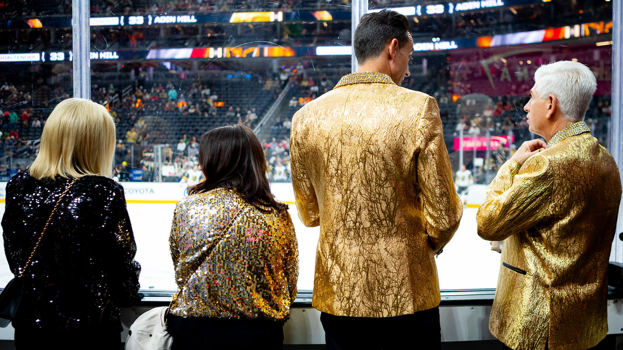 Las Vegas hotel owner Derek Stevens, owner of Circa, the D an Golden Gate in downtown, came onto the ice during the first period to donate $100,000 for youth hockey in Vegas. Stevens has been a VGK team sponsor from Season 1 and is a true Las Vegas throwback. He has donated $100K annually for the Knights’ nine years — or $900,000.