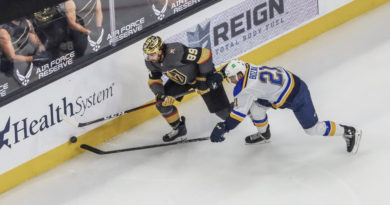 Las Vegas hotel owner Derek Stevens, owner of Circa, the D an Golden Gate in downtown, came onto the ice during the first period to donate $100,000 for youth hockey in Vegas. Stevens has been a VGK team sponsor from Season 1 and is a true Las Vegas throwback. He has donated $100K annually for the Knights’ nine years — or $900,000.