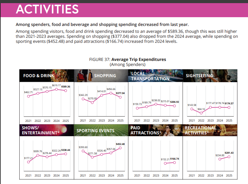 The report said tourist spending on sports events increased to $452.48 in 2025, about $95 more than in 2024.