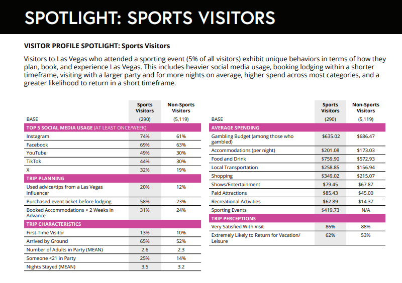 Three Percent Of Las Vegas Visitors Say Primary Reason To Visit Vegas In 2025 Was To Attend Sports Event, According to LVCVA Tourist Report