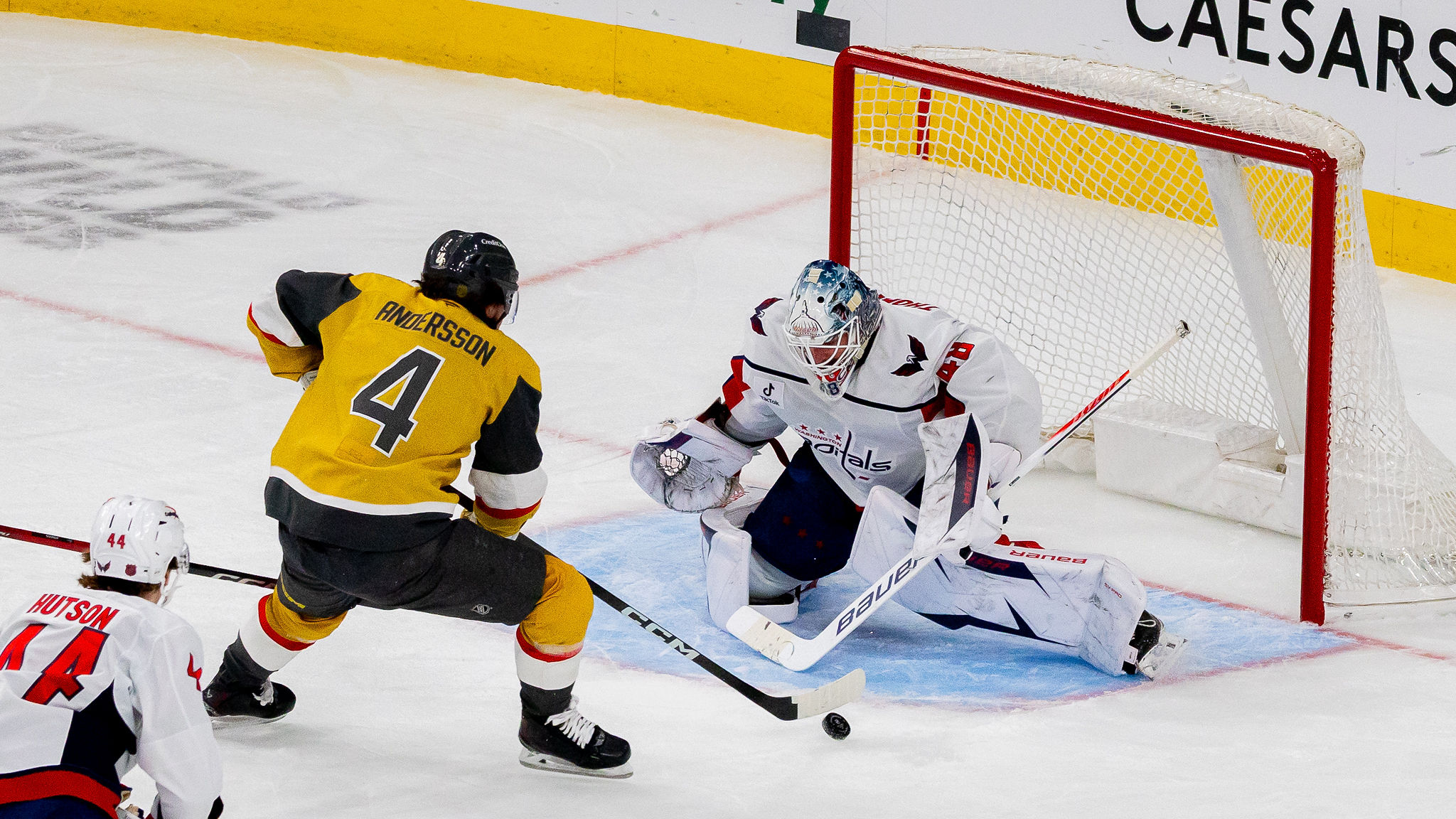 And it helped. The Knights scored another shorthanded goal. This time it was recently acquired defenseman Rasmus Andersson, who took a pass from center Jack Eichel and deked out Caps goalie Logan Thompson.