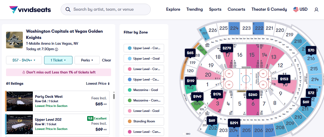 Get in price on secondary market: Vividseats had ticket costs at $65 on the secondary market 90 minutes before the game.
