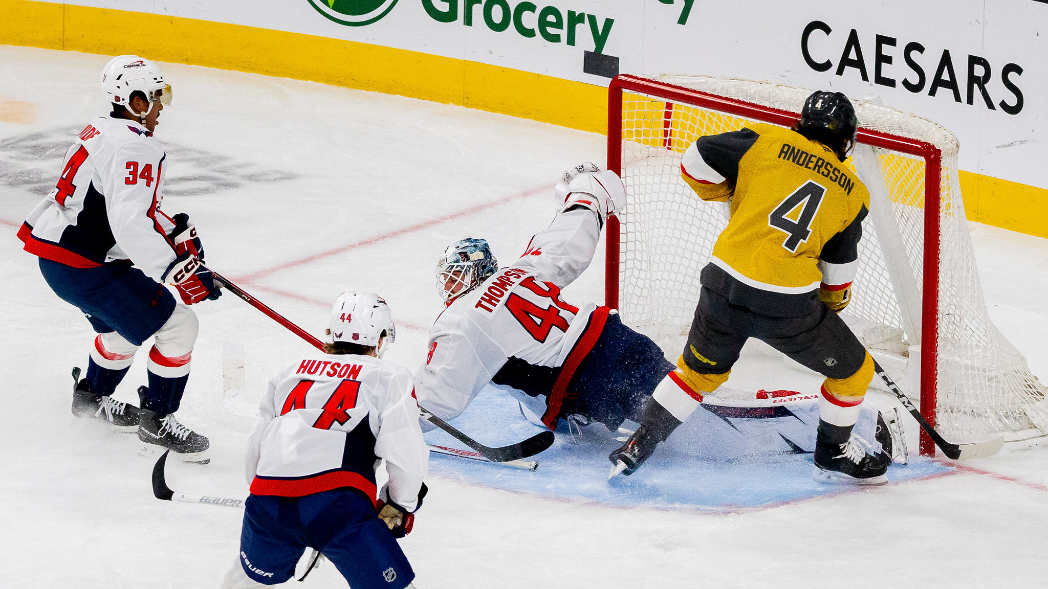 And it helped. The Knights scored another shorthanded goal. This time it was recently acquired defenseman Rasmus Andersson, who took a pass from center Jack Eichel and deked out Caps goalie Logan Thompson.