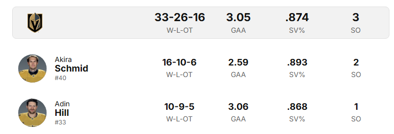A major question is Vegas’ goaltending. As you can see, the Knights yielded more than three goals a game and had a save percentage of only .874 entering the game behind Akira Schmid, Adin Hill and Hart, who is now 6-3-3. Hart had a GAA of 3.28 entering the game with a save percentage of .871.