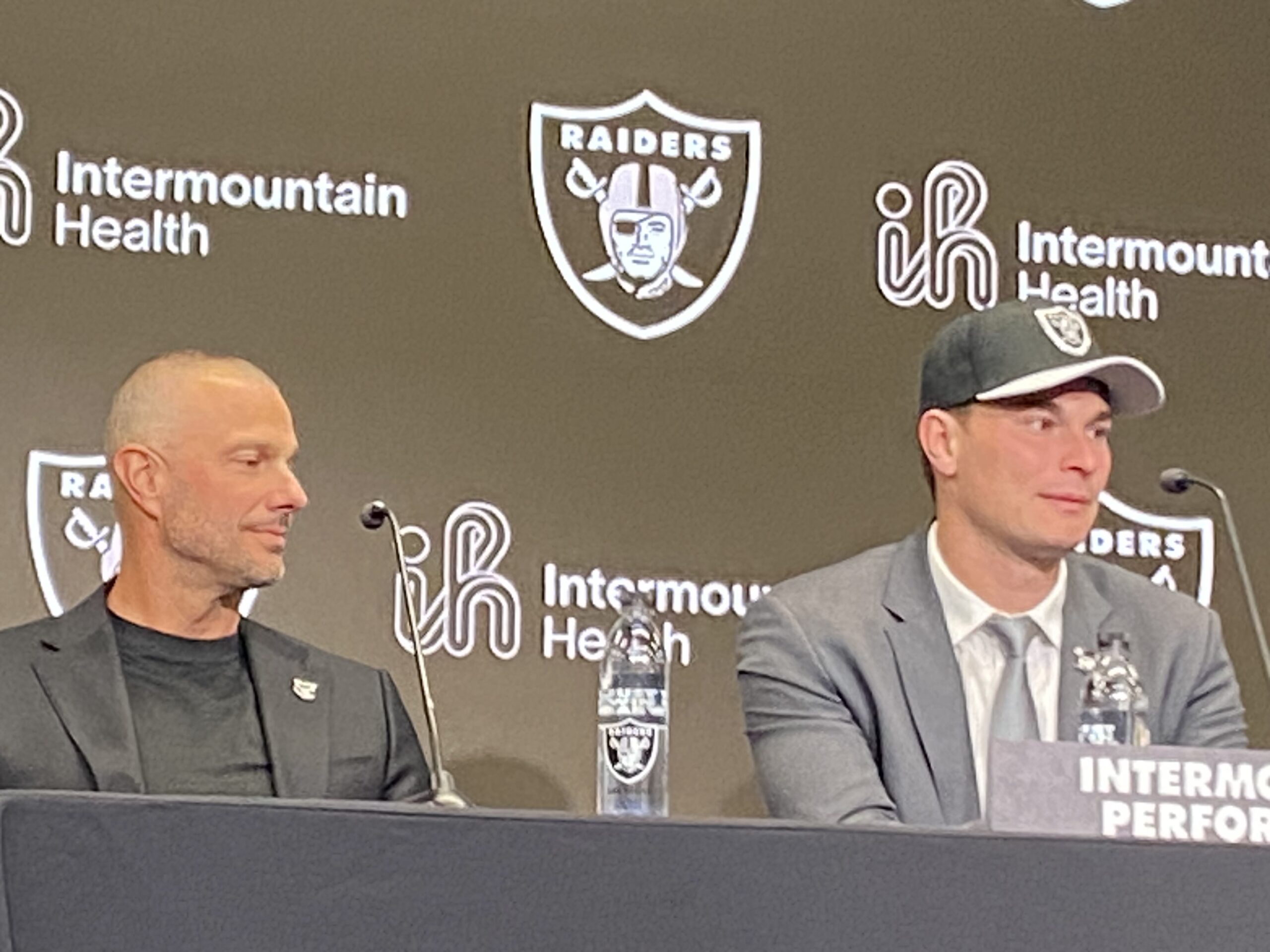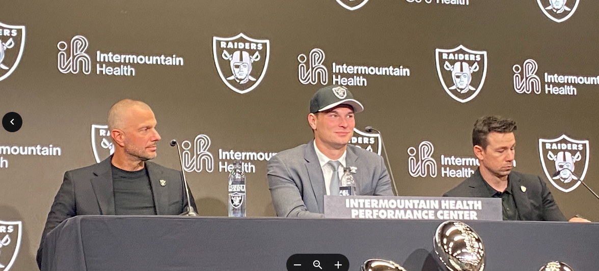 In walked Fernando Mendoza and he took a seat in the Raiders team meeting room at a table flanked by General Manager John Spytek on Mendoza’s right and head coach Klint Kubiak on his right. Mendoza’s family members sat in the back rows.
