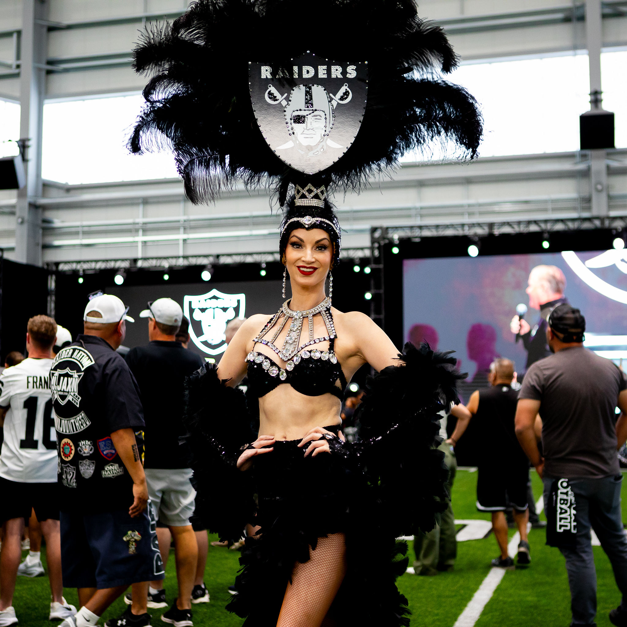 The Vegas Golden Knights are not the only team that hires the Las Vegas showgirl for work. The showgirls are seen at every VGK game dancing behind the opposition’s net during warmups and the Las Vegas Raiders also hired two showgirls for a fan draft party at the Raiders’ practice facility in Henderson.