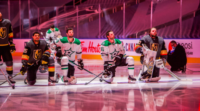 Read more(Publisher’s Note: Ryan Reaves and Robin Lehner of the Vegas Golden Knights and Tyler Seguin and Jason Dickinson of the
