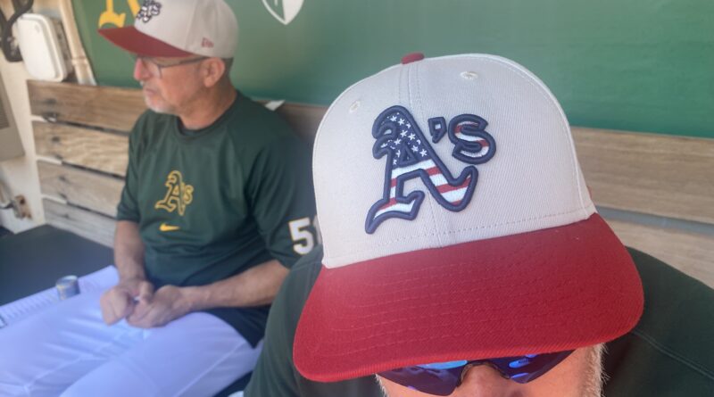 A's manager Mark Kotsay sporting the Fourth of July baseball hat in 2024. Photo credit: LVSportsBiz.com