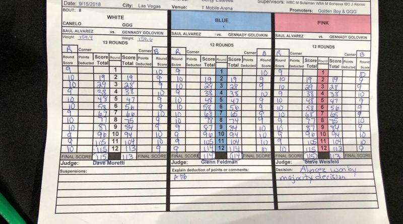 The Scorecard shows majority decision that gave Canelo the middleweight championship.