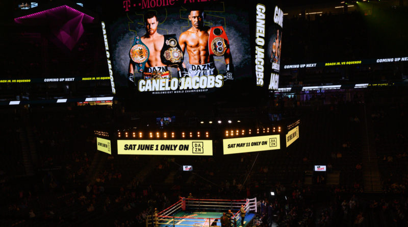 Streaming service DAZN is promoted at Canelo fight at T-Mobile Arena earlier this month.