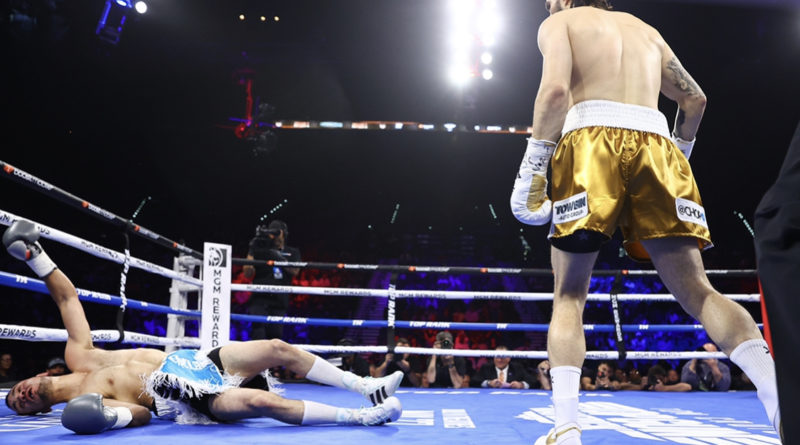 Nico Ali-Wash delivers a powerful knockout blow at MGM Grand Garden Arena Saturday night. Photos for this story by Photo credit -Mikey Williams of Top Rank Boxing