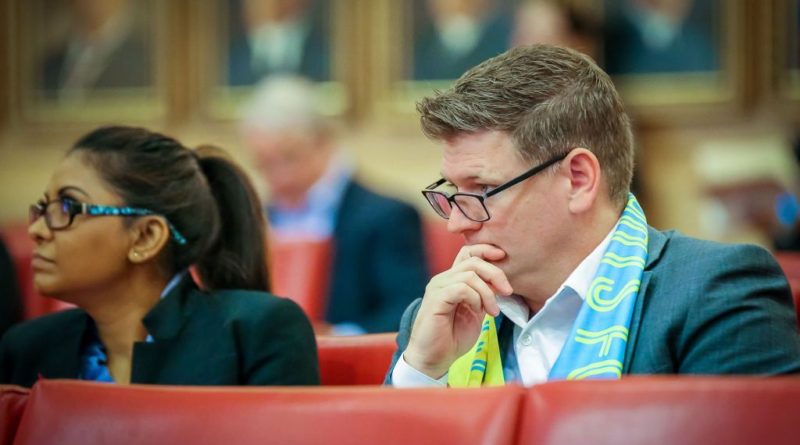 Las Vegas Lights FC soccer team owner Brett Lashbrook watches Las Vegas City Council meeting in June. LVSportsBiz.com photo by J. Tyge O'Donnell.